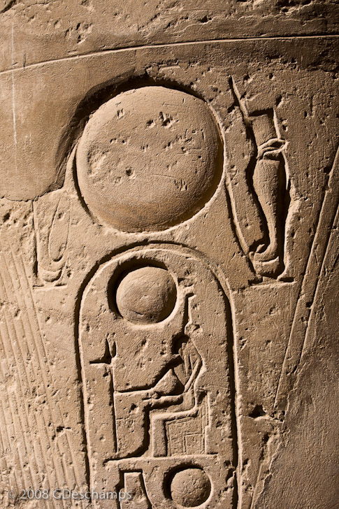 Detail of hieroglyphs carved in a column, Luxor Temple