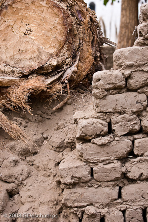 Wall partially destroyed by fallen palm tree, Elephantine Island