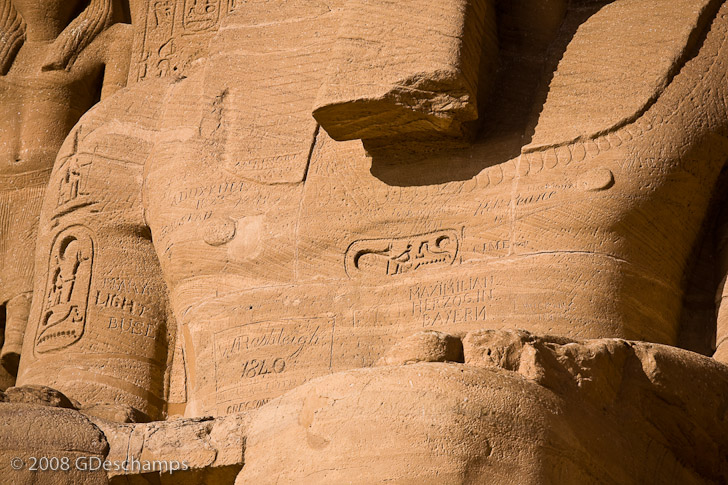 Graffiiti on the body of one of the collosal statues of Ramesses II at the Great Temple of Abu Simbel