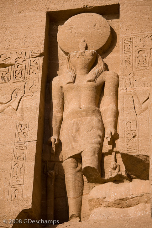 Statue of Ra-Horakhty (Horus) above the entrance of the Great Temple of Abu Simbel
