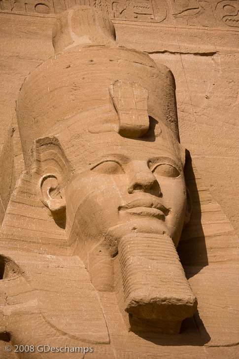 Head (close-up) of a statue of Ramesses II at the Great Temple of Abu Simbel