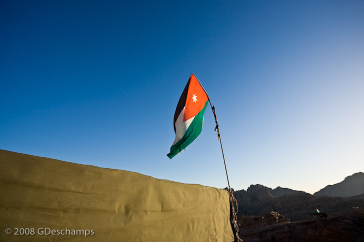 Jordan flag floating above the hut at Sacrifice View, Petra