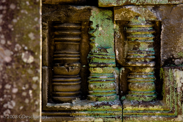 Columns sculpted in a wall, Angkor Wat temple (detail)