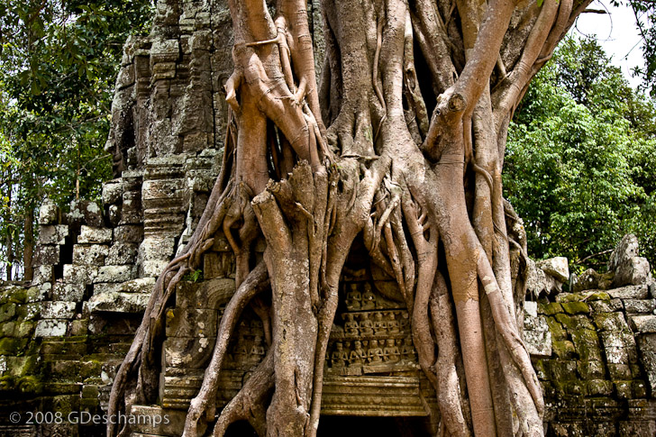 Tree growing over ruins in Ta Prohm temple