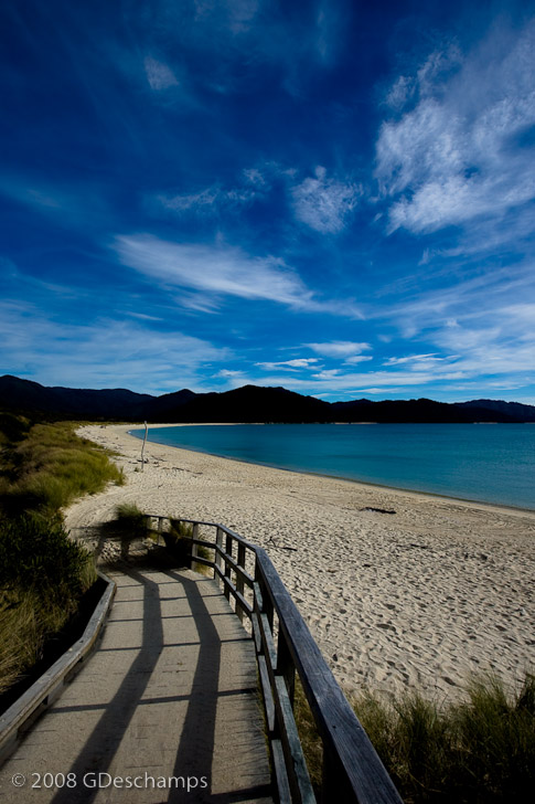 Awaroa Bay with boardwalk leading to Awaroa Lodge, Abel Tasman National Park