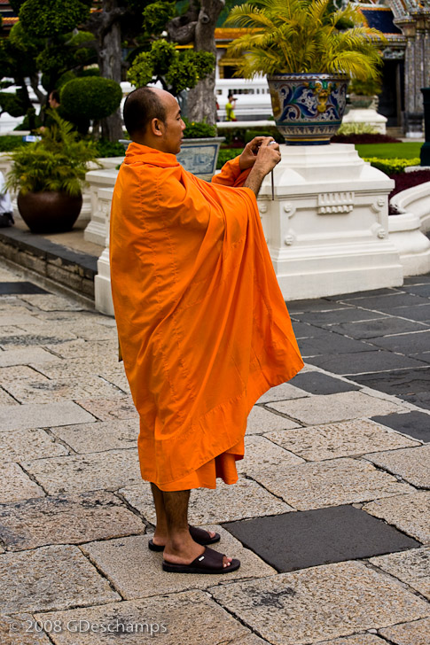 Buddhist monk taking a picture of Grand Palace
